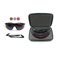 Safety glasses set that comprises 4 pairs of polycarbonate frames ( light weight but strong ) in 2mm thick polycarbonate for full impact resistance.